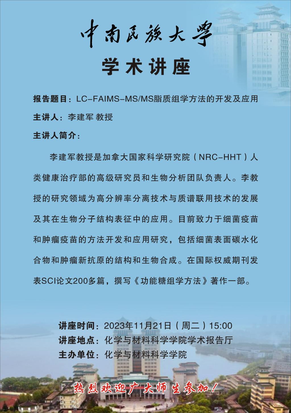 学术报告:LC-FAIMS-MS/MS脂质组学方法的开发及应用