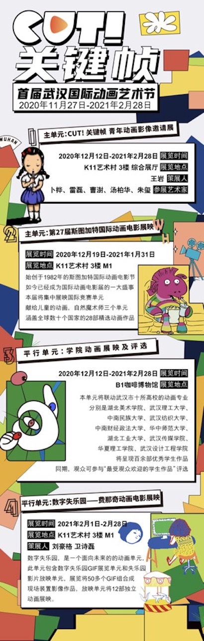 “CUT!关键帧:首届武汉国际动画艺术节”共计4个单元,呈现当代动画领域的关键切面,汇集成一个既具有国际视野的,又聚焦本土动画行业发展的动画艺术节。