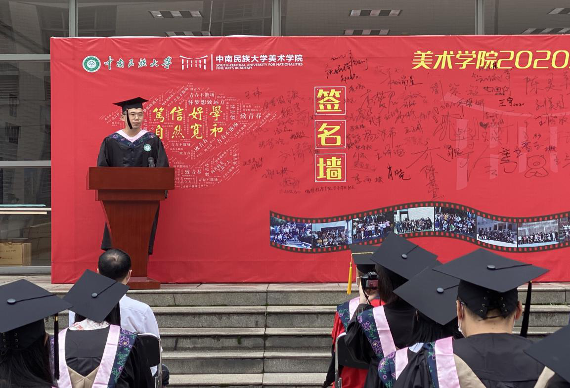 面对即将远行的学子,吴院长与大家分享了三句话:希望同学们始终“饮水思源,懂得感恩”,秉承坚定的理想信念,用实际行动诠释对国家、民族、事业的忠诚;“学海无涯,艺无止境”,在奋斗与奉献中追逐青春梦想,以执着和朴实成就平凡的伟大,始终保持对于艺术的追求与热爱,不断超越自我,实现人生理想;“脚踏实地,融入社会”,在未来的人生征途中,面对未知的困难和艰辛,打造一个更加“硬核”的自我,笃定前行,努力成为新时代奔涌的“后浪”,谱写无愧于时代,无愧于人民,无愧于母校的人生篇章。