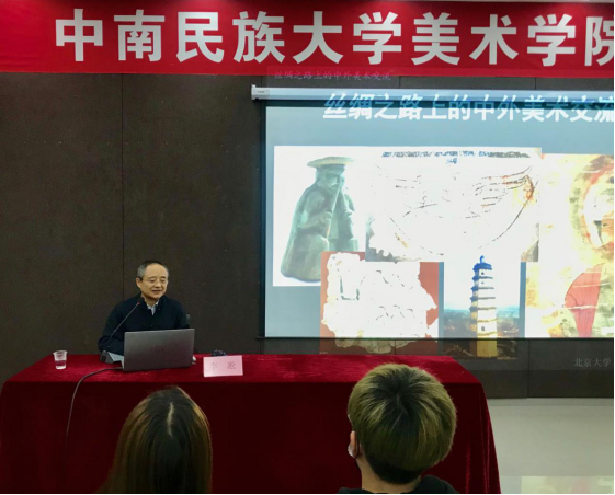 2020年11月19日下午14:00,北京大学艺术学院教授、博士生导师、艺术史博士李凇教授在美术馆三楼报告厅进行主题为《丝绸之路上的中外美术交流》的学术讲座。美术学院理论教研室主任、中国少数民族艺术硕士生导师肖屏副教授进行学术主持,美术学院全体教师、学生参与讲座。