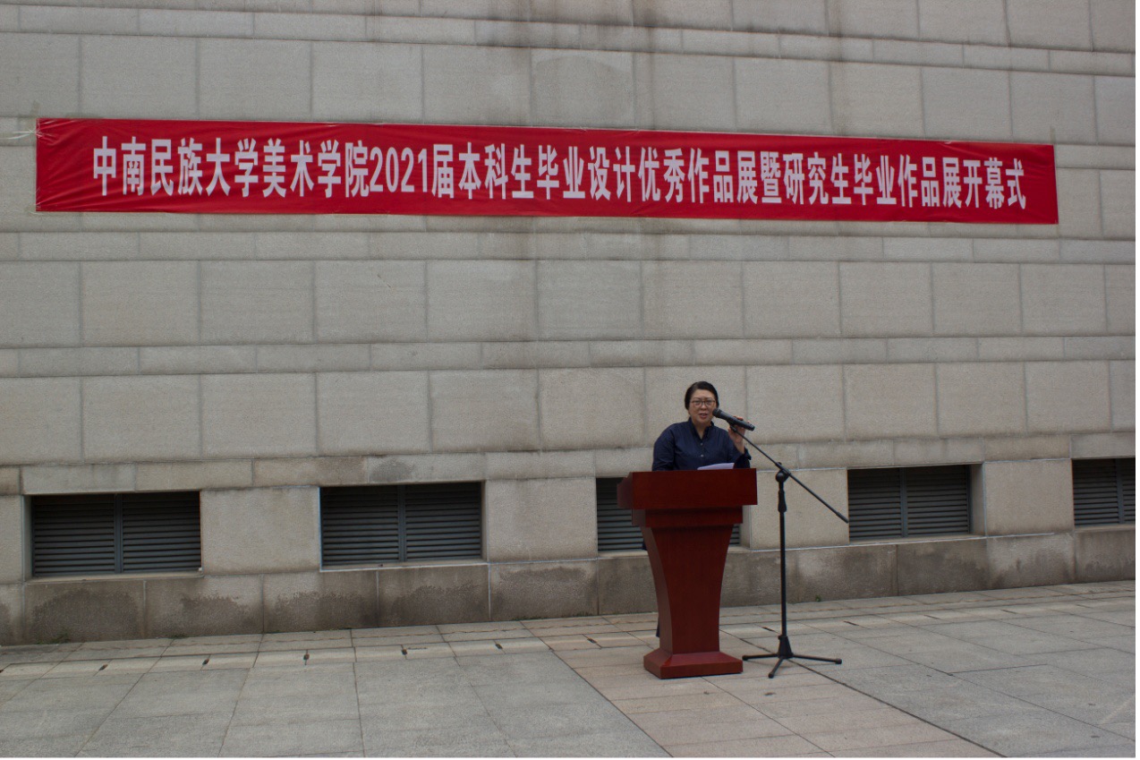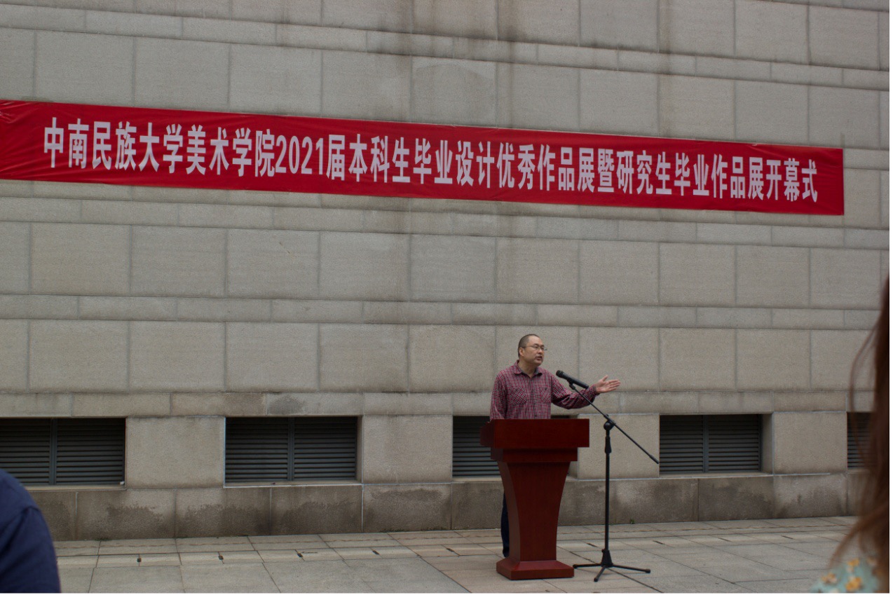最后,党委书记刘子元发言,他祝贺开幕式取得了圆满成功,并对为2021届本科生优秀毕业作品展开幕式做出的付出表示感谢,并勉励同学们在未来的艺术学习生涯中再创佳绩和辉煌。