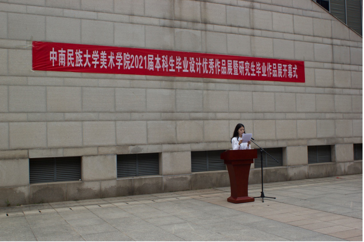 5月25日上午,在光谷美术馆广场,必赢国际437官网美术学院2021届本科生优秀毕业作品展开幕仪式隆重举行。党委书记刘子元、院长吴海广、教学副院长彭阳陵、各专业学院教师代表以及作品获得美术学院2021届优秀本科毕业设计的几十名本科生、各年级学生参加了开幕式,开幕式由彭阳陵主持。
