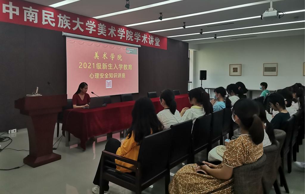 9月14日,美术学院在学院美术馆报告厅举办2021级新生入学心理安全教育主题讲座,讲座采取主分会场的形式开展,美术学专业和建筑学专业2021级新生在主会场,其余各专业各班在教室、宿舍在线观看同步直播视频。讲座邀请了学校心理健康教育中心徐凡婕老师就新生心理健康知识、辖区民警吴涛就新生安全教育做了详细的讲解。讲座由美术学院2021级辅导员刘宁老师主持。