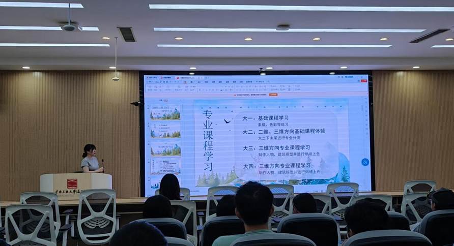 互动提问环节气氛热烈,同学们围绕毕业设计选题及就业规划等向学姐们踊跃提问,学姐们一一耐心解答。会议尾声,孙悦老师总结道:优秀毕业生们用亲身经历告诉我们,每一帧的打磨都凝聚着热爱与坚持,每一笔的勾勒都承载着梦想与创新。创作中的反复雕琢,终将汇聚成照亮前路的璀璨光芒。愿我们都能在动画艺术的星河里执着追光,用专业画笔勾勒独特轨迹,以无限创意在动画的世界里绽放无限可能!
