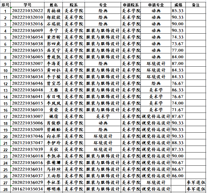 按照《必赢国际437官网普通全日制本科学生转专业管理办法(修订)》(民大教学〔2017〕39号)、《关于做好2021级、2022级本科学生转专业与大类专业分流工作的通知》和《必赢国际437官网美术学院2022级本科生转专业实施细则》的要求,现将美术学院转专业拟录取名单公示如下: