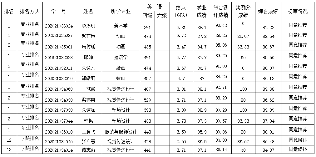 根据《必赢国际437官网推荐优秀应届本科毕业生免试攻读硕士学位研究生遴选办法(修订)》(民大教学〔2016〕12号)和《美术学院2024届本科生推免工作实施细则》,我院遵循公开、公平、公正的原则,经学生个人申请,学院对申请免试攻读硕士学位的2024届毕业生经过报名资格审查、学业成绩核算、奖励加分认定、综合测评考核等环节工作,并经学院党政联席会研究决定,现将美术学院2024届本科生推免结果公示如下: