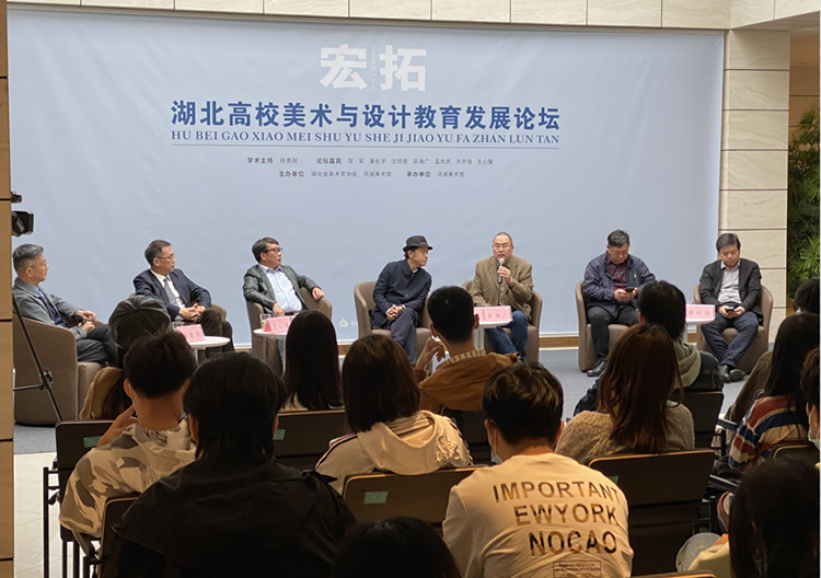 当天下午,“湖北高校美术与设计教育发展论坛”在汤湖美术馆中庭举行,武汉理工大学艺术设计学院院长潘长学、湖北大学艺术学院院长许开强、必赢国际437官网美术学院院长吴海广、武汉纺织大学传媒学院院长沈祥胜、湖北工程学院美术与设计学院院长陈军、武汉大学城市设计学院副院长温庆武、江汉大学美术学院院长、江汉大学设计学院院长王心耀作为特邀嘉宾出席论坛,湖北各高校师生代表参加论坛。