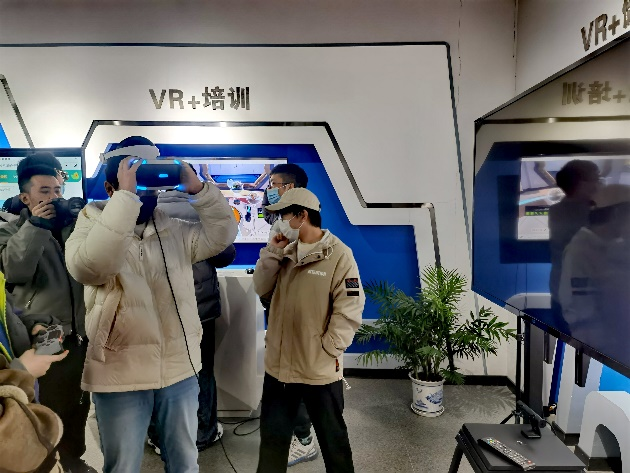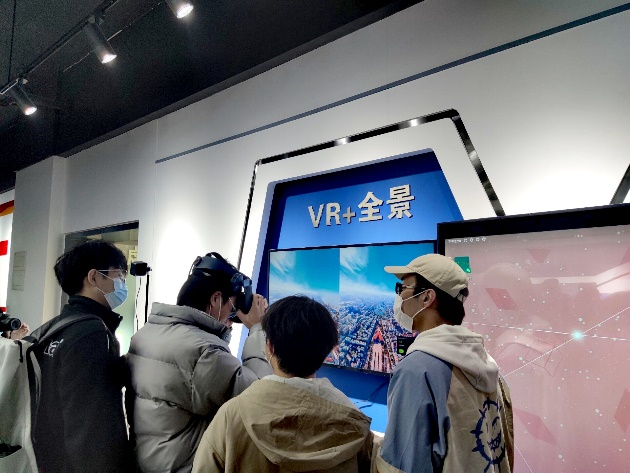 同学们首先在园区展厅中,沉浸式体验了VR/AR技术在多个场景中的应用,体会艺术与科技相结合的魅力。