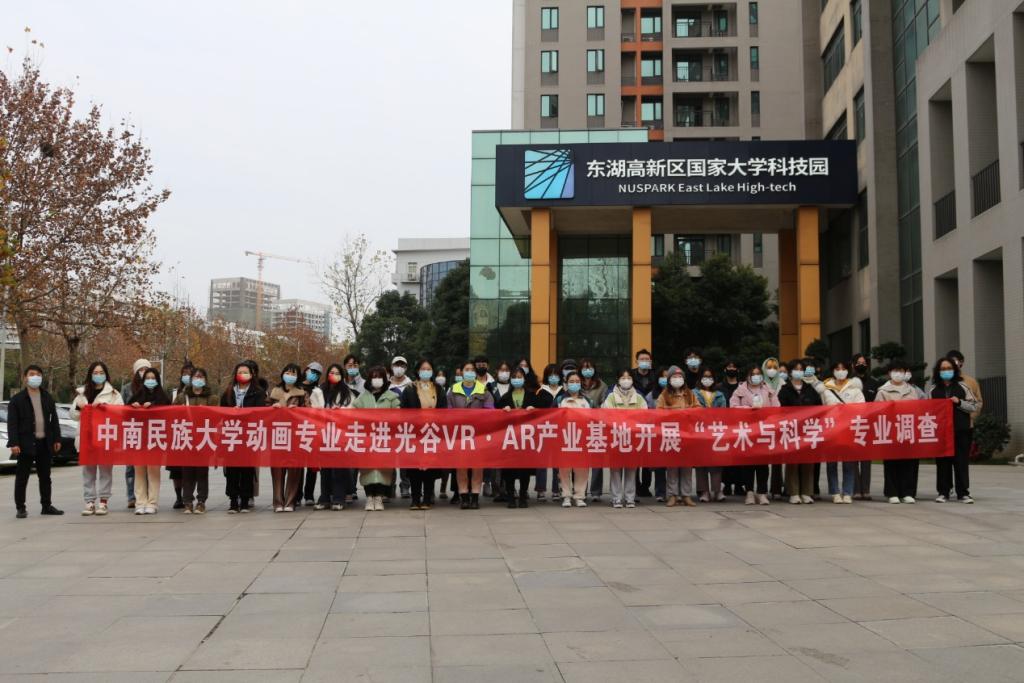 2021年12月14日下午,必赢官网美术学院2019级动画专业学生前往光谷·国家大学科技园VR/AR产业基地开展“艺术与科学”专业调查活动。