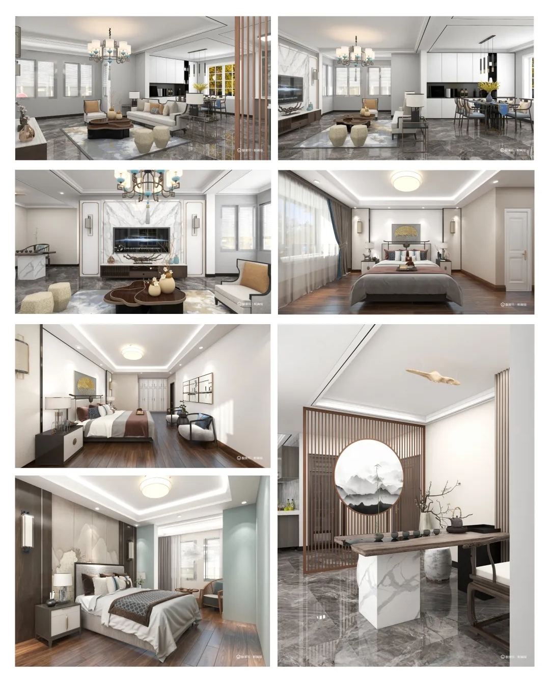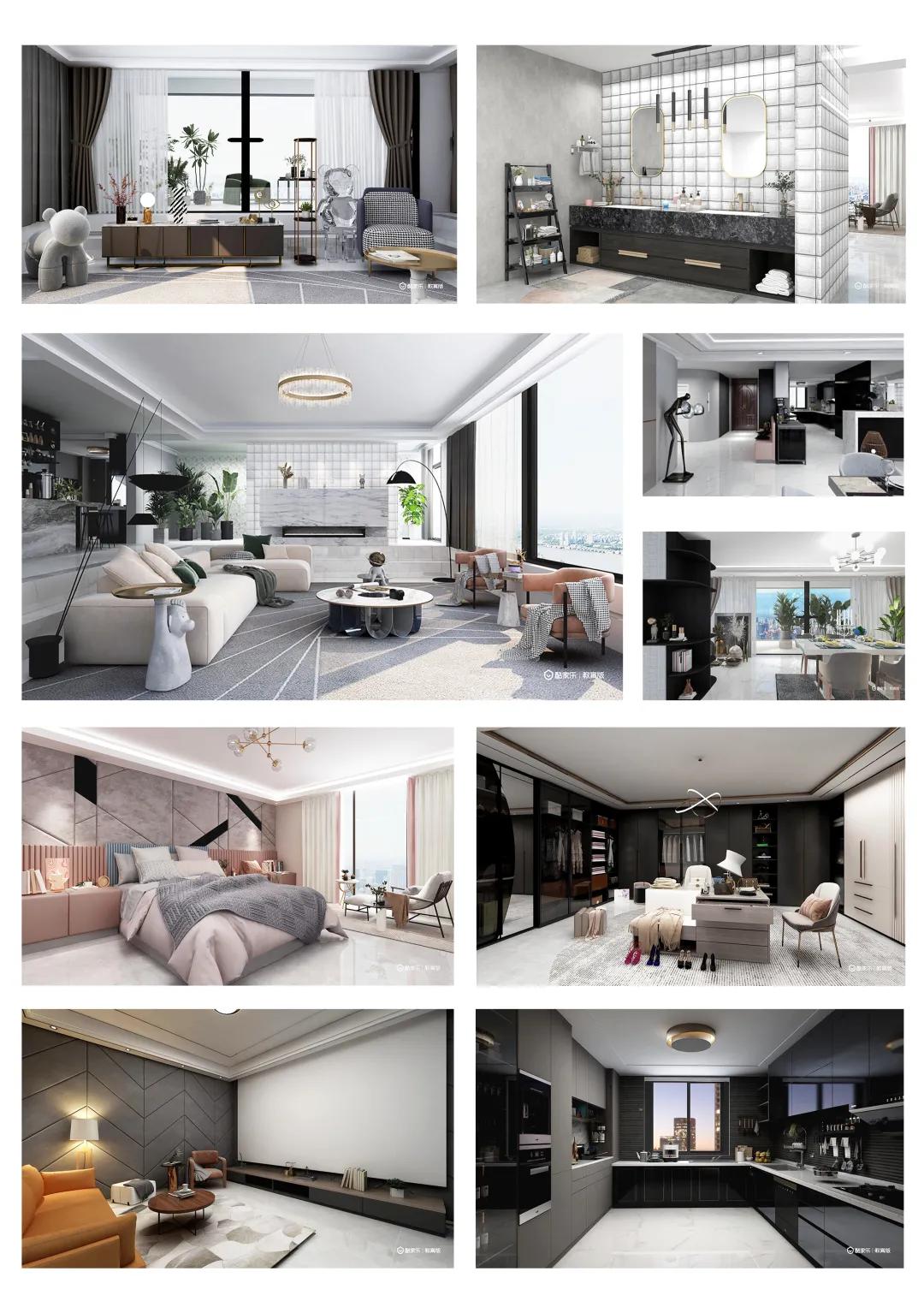 本次作业我还原改造了《你是我的荣耀》中迪丽热巴的四百平大平层。整体风格是轻奢现代风。整套房子只有一个卧室,客厅采用的下沉式设计,还采用了大型落地窗,超广的全景视野让整个房子采光都很好。厨房是开放式设计,中式西式厨房分开。卧室与洗手间以玻璃墙做隔断。影音室采用的软包处理隔音效果很好。