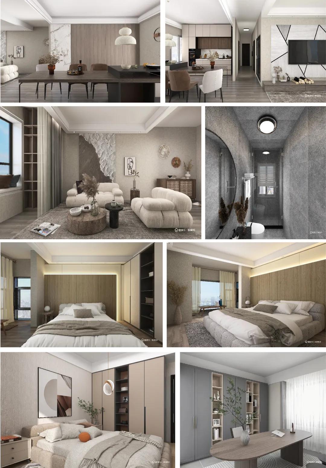 本方案的名称为《简木》,整套方案采用整体简约的布局搭配原木色及白色。成套的原木色家具作为空间的主角,洋溢着不加雕饰的美感,纹理质朴,色泽素雅,开放式的设计让整个家居环境更加开阔,视觉上也更加通透明亮,能够获得舒适与放松。运用几何学形态要素,避免物体和形态突出,尽量排除多余痕迹,采用取消装饰细部处理的抑制手法来体现空间本质,使室内布置清爽、有序,富有时代感和整体美。本方案主打诠释快节奏的城市寻找慢节奏的生活,都市的喧嚣与繁忙,本不该是生活的全部,用原木来装饰家居,褪去浮华质朴简雅,舒让空间回归自然简洁,可以为生活带来返璞归真的自在感受,诠释出“闲暇处才是生活”的理念。