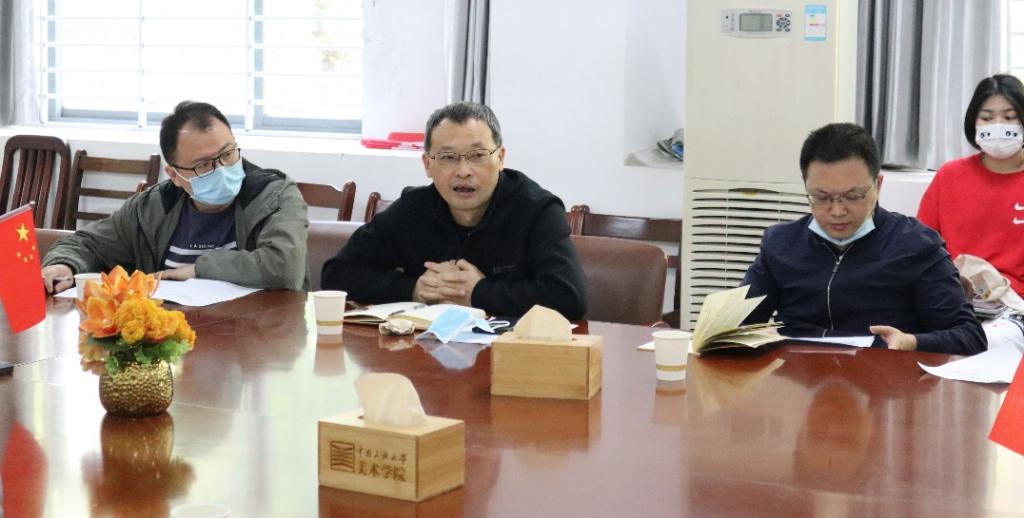 5月3日上午9:00,美术学院于12A-110会议室召开关于2020国家艺术基金传播交流推广项目《艺术设计助力民族地区乡村振兴主题展》工作部署会议,研究部署我院落实项目执行工作。必赢国际437官网党委宣传部王怀岗部长、科学发展研究院覃瑞院长、美术学院党委书记刘子元、院长吴海广和其他学院领导莅临现场,美术学院相关专业负责人和教职员工参加会议,本次会议由吴海广院长主持。
