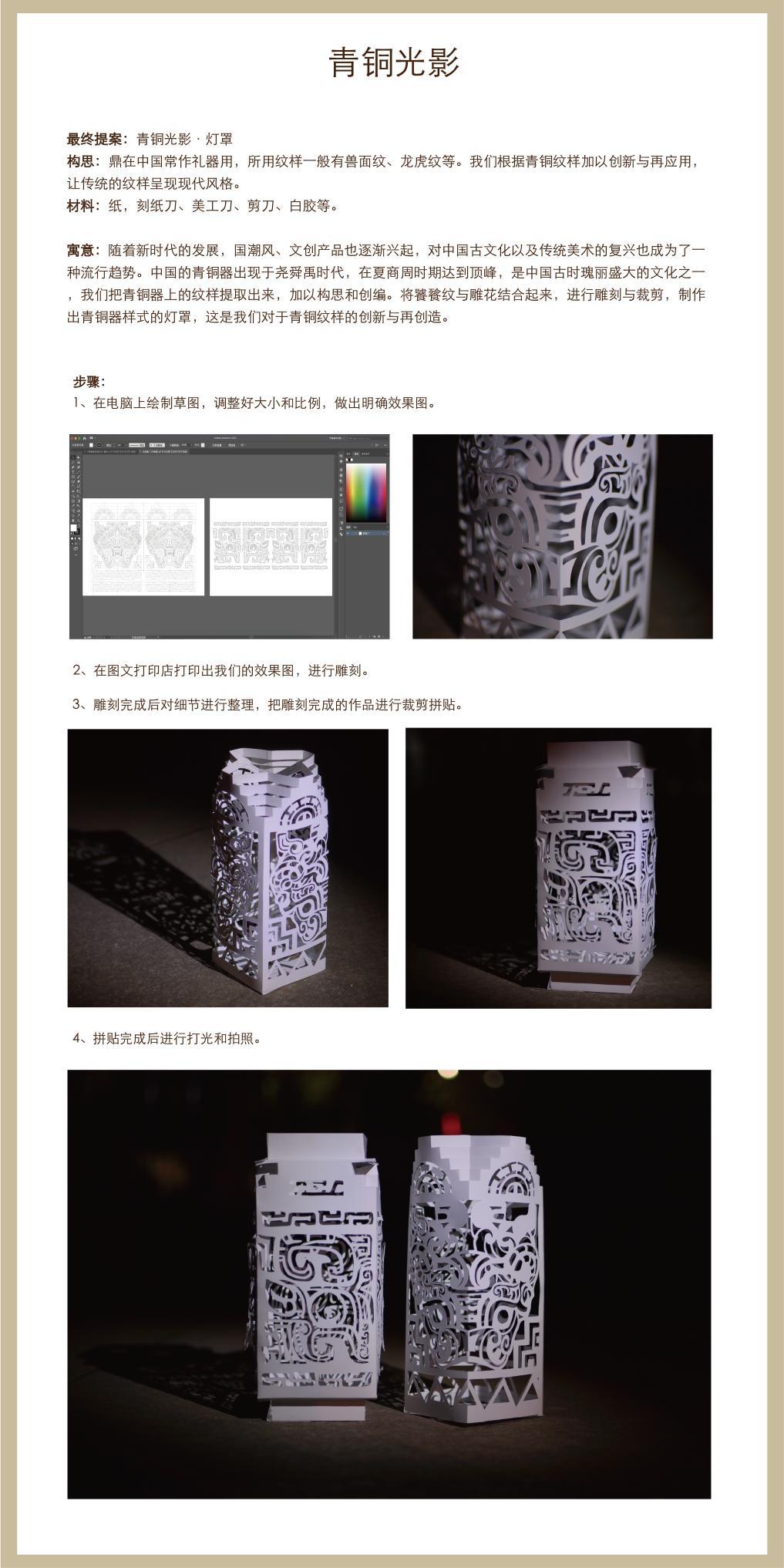 《青铜光影·纸雕灯罩组》——作者:李淳、贺萍——指导教师:聂丽