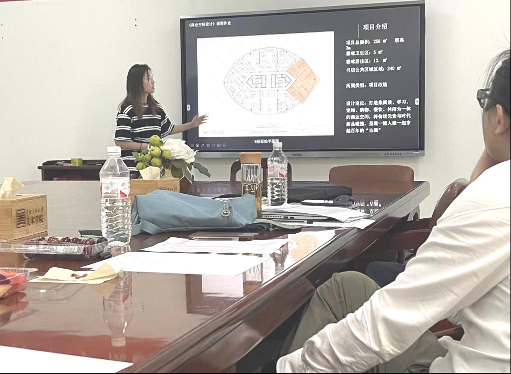 课堂上,孙云娟老师首先对相关评图专家进行了一一介绍,并对《商业空间设计》课程教学的整体思路、教学要求、教学进度安排等方面进行了较为全面的梳理。随后,童丽环、吴尚、郑梦磊、赵怡文等十余位同学分别结合自身已完成的阶段性课业成果,从项目设计背景、场域环境、设计思路、空间构思、方案表达等方面,进行了相关的汇报。课程评图专家团队依次进行针对性的点评与答疑指导。