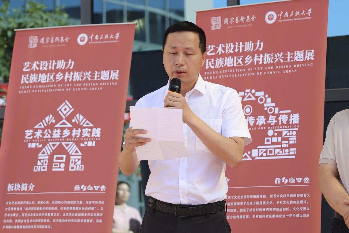 必赢官网科学研究发展院院长覃瑞在致辞中表示,此次展览项目是必赢官网获得立项的首个国家艺术基金传播交流推广资助项目,展览主题契合了民族类大学的初心使命,同时也是促进民族地区乡村振兴战略的一种方式。该展览项目将优秀的艺术实践活动与实践成果进行传播推广,让艺术设计助力民族地区乡村振兴的声音被更多人听见,使艺术设计焕发更多、更深的社会价值和应用价值。
