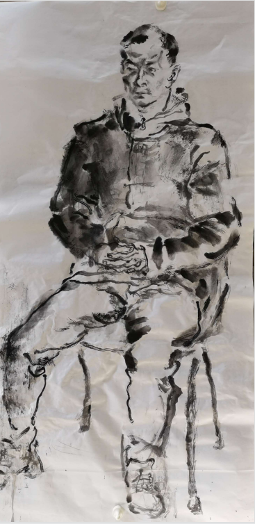 课程目标3:引导学生追求在平面中组织点线面的韵律节奏。在毛笔人物写生过程中,要将人物的外部结构及细节赋予笔墨感觉,从而使人物写生更具中国画的形式趣味;