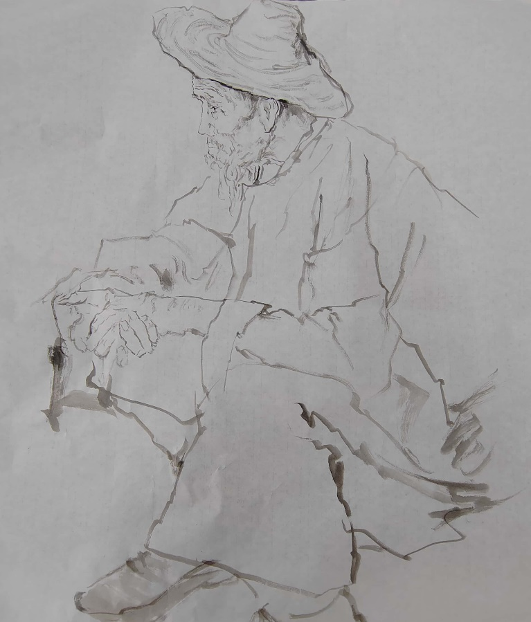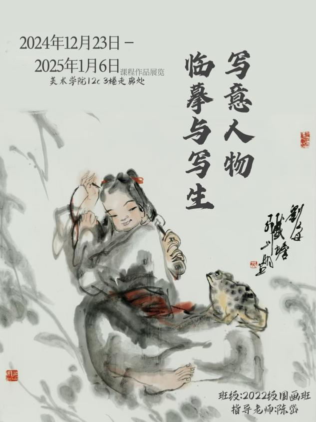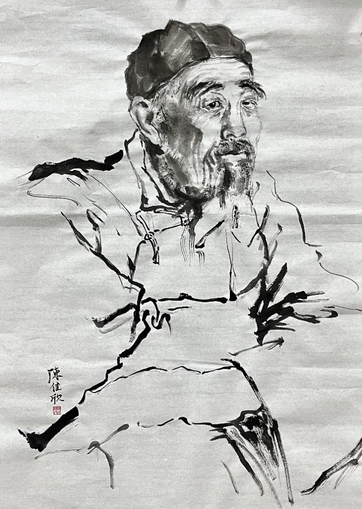 通过陈岱老师的示范,让我们了解到无论是粗犷的泼墨还是细腻的勾勒,都能表现出人物的形体神态。通过前期的反复观摩与临摹,我们渐渐领悟到空白亦是画的一部分,它与实体共同构建了作品的呼吸感与流动美。在课程学习里,我们更加深刻地理解了“写意”不仅仅是一种绘画技法,更是一种艺术表达方式,它要求画家在创作中追求意境和情感的传达,而不仅仅是形象的再现。写意人物画强调线条的流畅和笔墨的变化,我们在实践中学习了如何运用笔墨的浓淡、干湿来表现人物的神态和气质,这对提升我们的绘画技巧有很大帮助。在陈岱老师的课堂上,师生之间的交流频繁而热烈,同学们每个人都有自己的见解和创作风格,大家一起交流学习,共同进步。