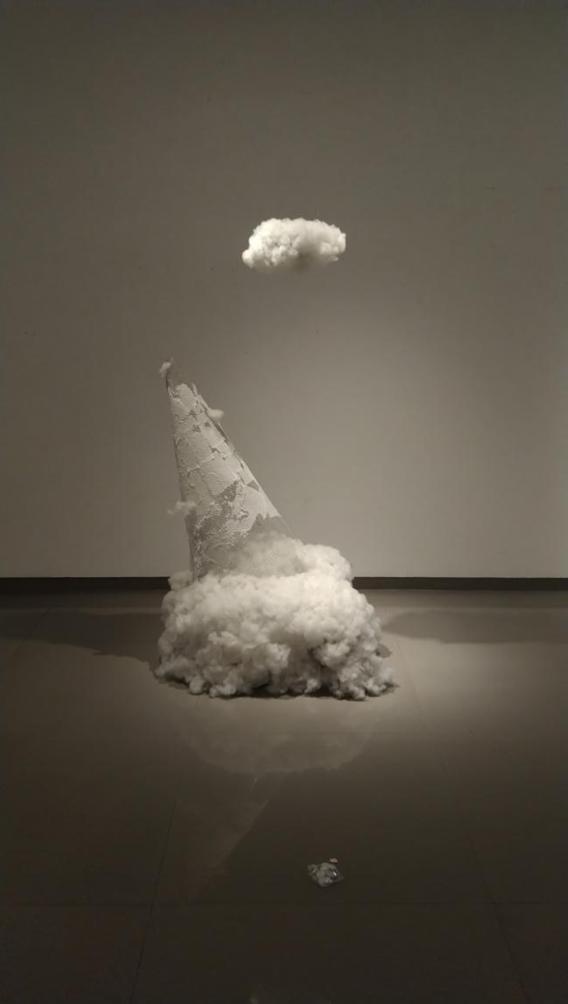 创作理念:作品以“童趣的升华”为主题,通过放大日常生活中的甜蜜符号(冰激凌脆筒),解构其形态并重组为悬浮的“云”,隐喻快乐记忆的轻盈与易逝。