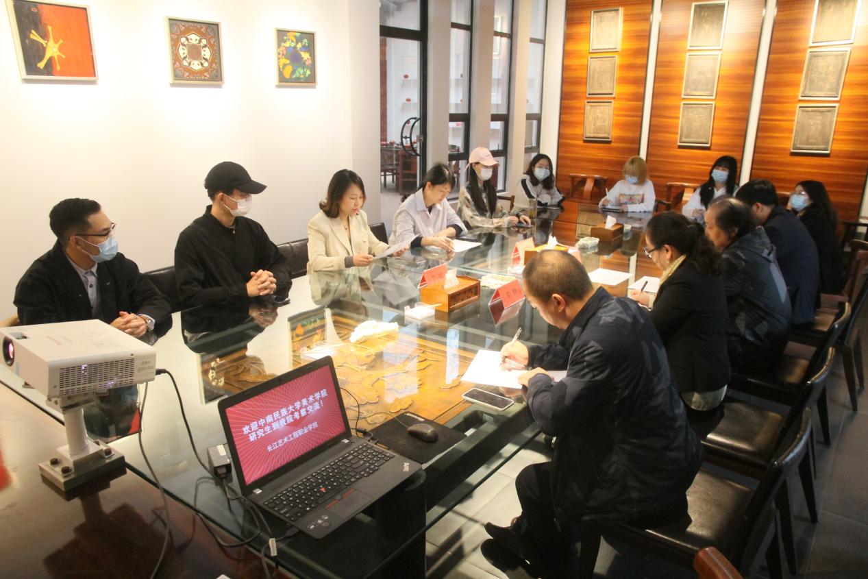 9日上午,荆州十八匠非遗传承院相关领导为我师生举行了欢迎会,到会的传承院领导老师有副院长刘静、非遗学院常务副院长严朝龙、学院艺术系主任王宗元和相关负责教师。会上,刘静副院长对我院到访师生表示热烈欢迎。自2020年7月双方签署共建实践教学基地协议以来,多次互访,交流频繁,在荆楚传统文化与创新方面有着共同的理念和使命。本次研学活动是我院首次派专业学位硕士研究生前往该基地进行实习实践,旨在学习荆楚文化,对荆楚传统工艺美术进行调研、学习和创新一体的实习实践活动。