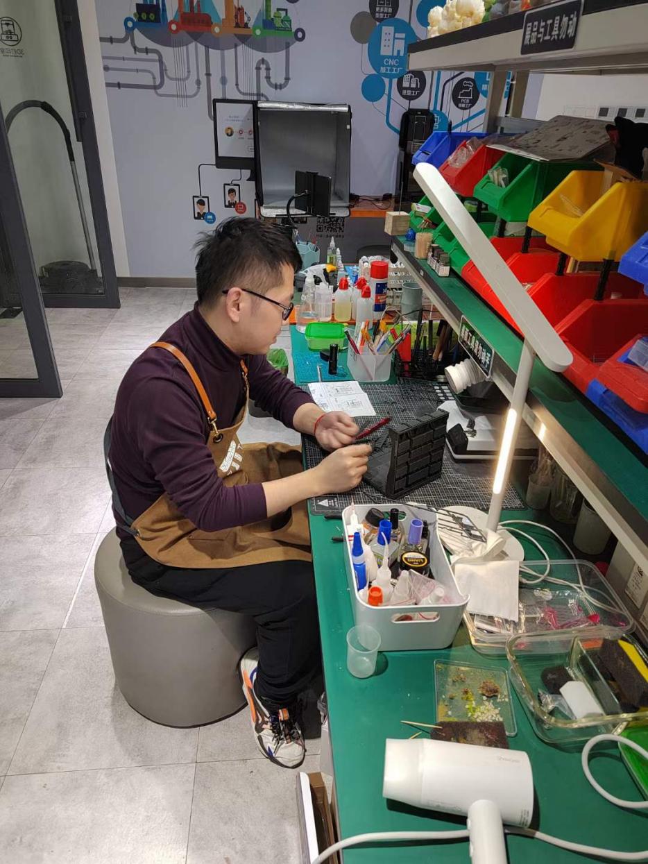 微工坊的罗总对研究生来实习基地表示欢迎,并向同学们介绍了微工坊的空间布局、承担功能、设备应用,以及相关的管理制度。据了解,微工坊现有潮玩手办工作室,主要设计原创潮玩手办;科创教育工作室,只要在微工坊研发机器人运动相关产品;激光文创设计工作室,主要依托微工坊的激光设备,开发了红色文创、科技文创。