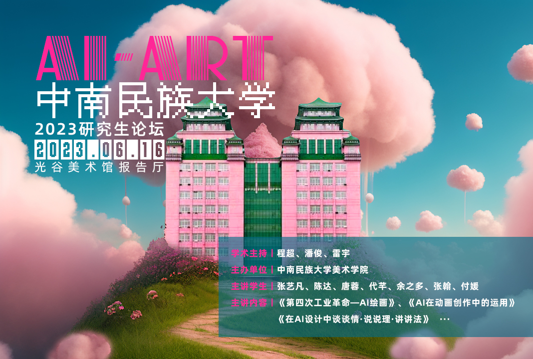 在AI设计的浪潮下,必赢国际437官网美术学院于2023年6月16日上午9:00在光谷美术馆报告厅举办了2023研究生论坛,开展AI技术在美术、视传、动画等多个专业运用的研讨。本次论坛由潘俊副院长主持,程超教授、雷宇教授和莫彦峰老师参与了研讨交流。