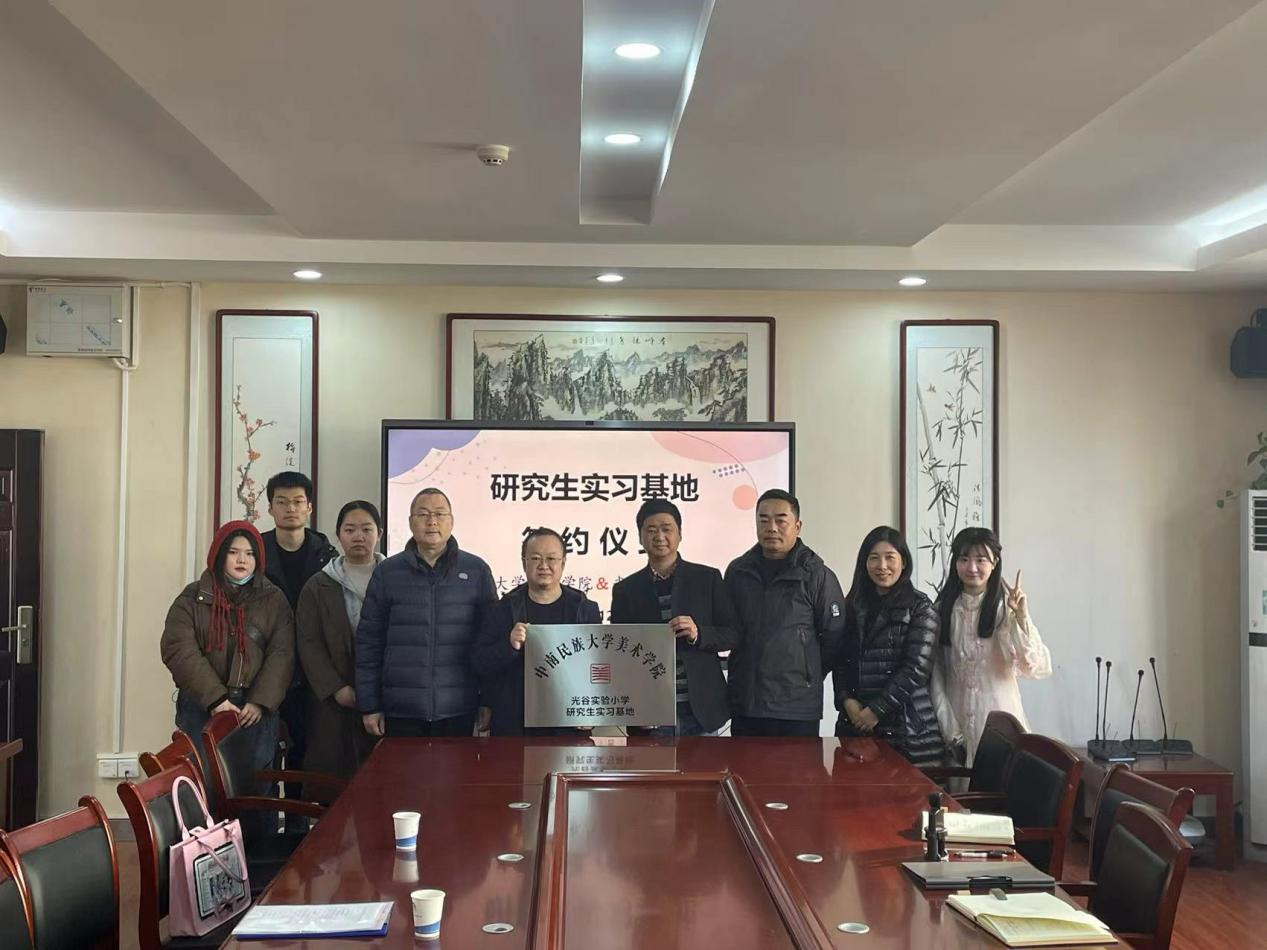 2023年12月4日,必赢国际437官网美术学院院长吴海广、副院长夏晋、教研室主任姜小渊、研究生辅导员张丁,以及部分研究生代表赴武汉市光谷实验小学洽谈实习实践基地合作协议事宜。光谷实验小学党委书记范友峰、副校长黄方毓、课管主任殷春莹共同参与美术学院研究生实习实践基地挂牌仪式。