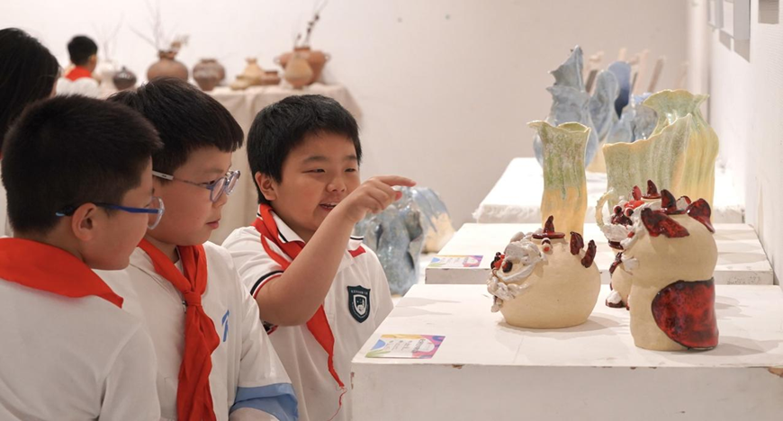 在参观过程中,小同学们被大哥哥、大姐姐们的作品深深吸引。他们或驻足欣赏,或轻声讨论,眼中闪烁着对艺术的憧憬和向往。