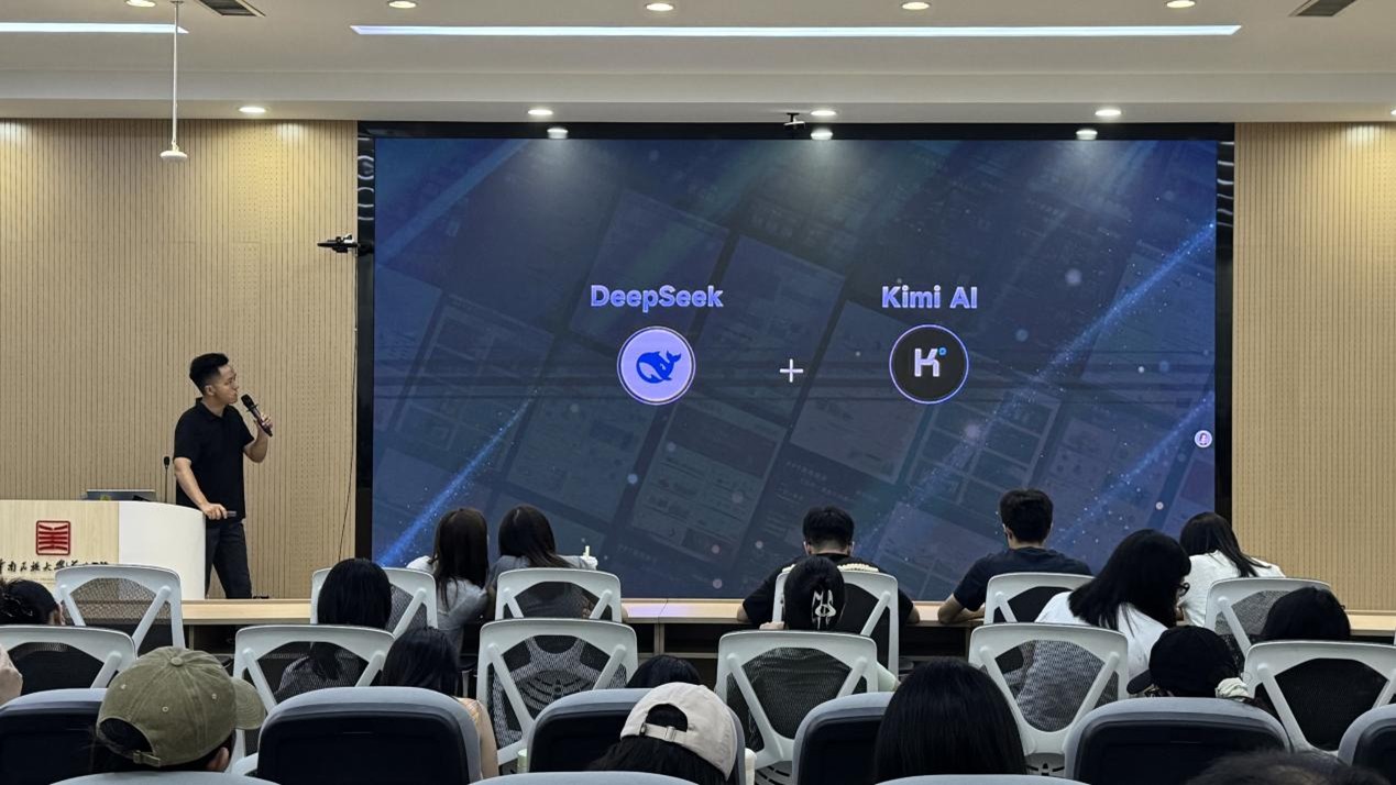 最后,张俊辉先生从PPT基础知识讲解转向AI技术在PPT当中的运用,现场展示了AI工具生成设计素材、优化文案内容等技术。他指出,现阶段的AI工具距离实现专业设计仍处于完善阶段,做出优秀作品仍需以创意为核心,需要的更多的是开发、拓展创造性思维,以自身灵感为基点进行作品创作。