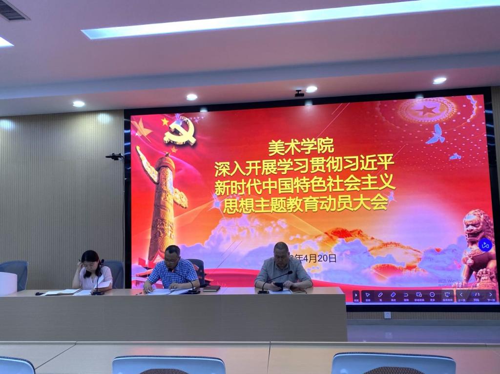 4月20日下午,美术学院在美术馆三楼报告厅召开“深入开展学习贯彻习近平新时代中国特色社会主义思想”主题教育动员大会,会议由学院党委书记刘子元主持,校党委组织部副部长王琼莅临指导,学院全体教师职工参加会议。
