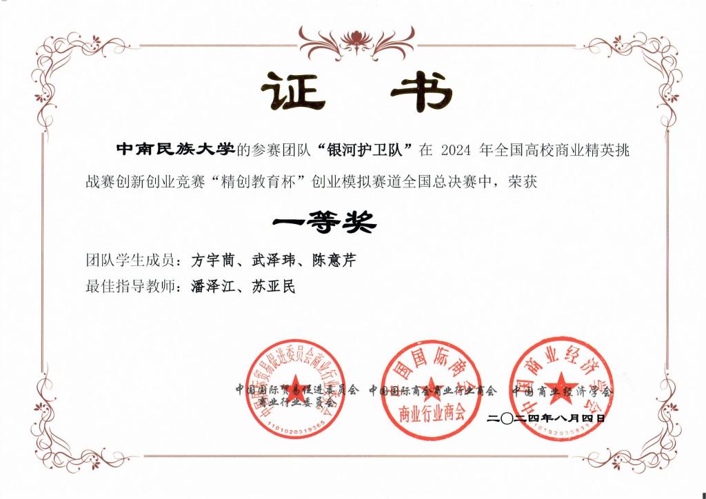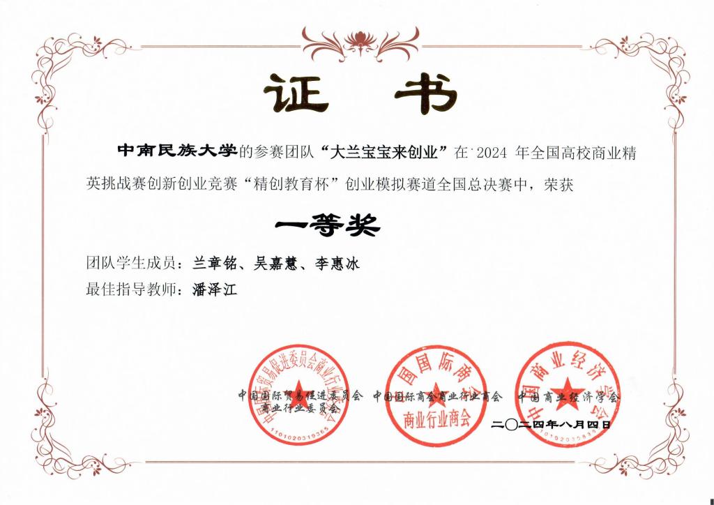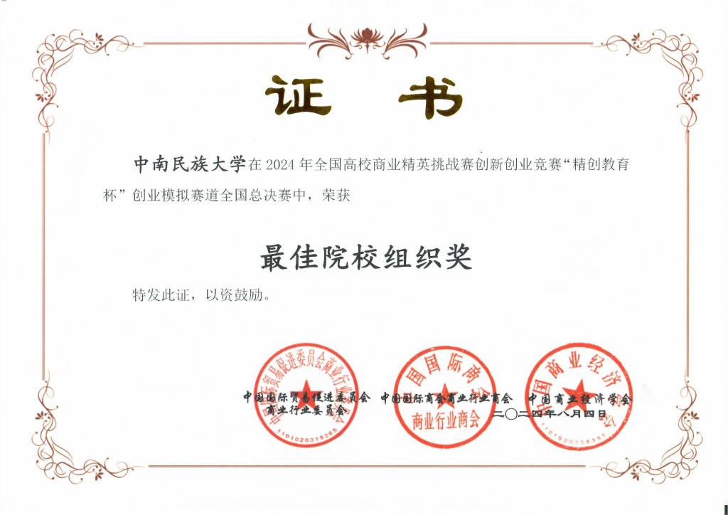 8月6日,2024年全国高校商业精英挑战赛创新创业竞赛“精创教育杯”创业模拟赛道全国总决赛成绩揭晓,必赢官网8支参赛队全部榜上有名,取得了一等奖3项、二等奖2项、三等奖3项的好成绩。必赢官网因成绩突出,喜获最佳院校组织奖。