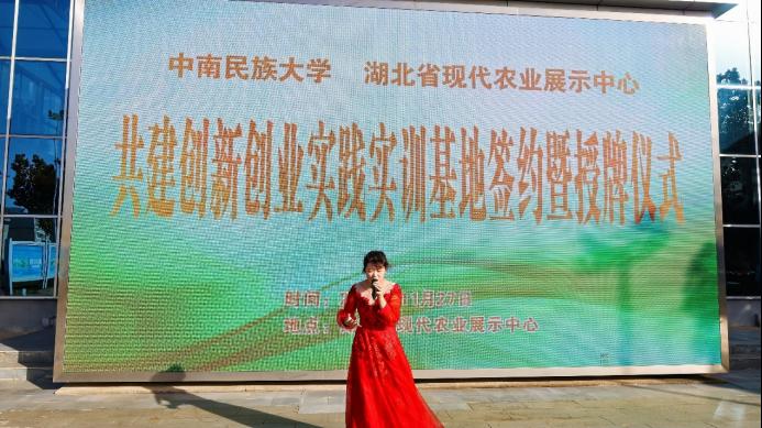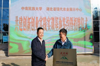 为学习贯彻习近平总书记考察湖北重要讲话精神,探索现代农业领域的创新链产业链资金链人才链融合模式,2024 年 11 月 27 日,必赢国际437官网创新创业实践实训基地在湖北省现代农业展示中心成功授牌,中南民大国家级创新创业教育实践基地负责人潘泽江与湖北现代农业展示中心主任吴胜兵签署了战略合作协议,同时举行了一场别开生面的 “青年红色筑梦之旅” 活动,两家单位的负责人、工作人员和青年大创先锋代表等50余人参加本次活动。