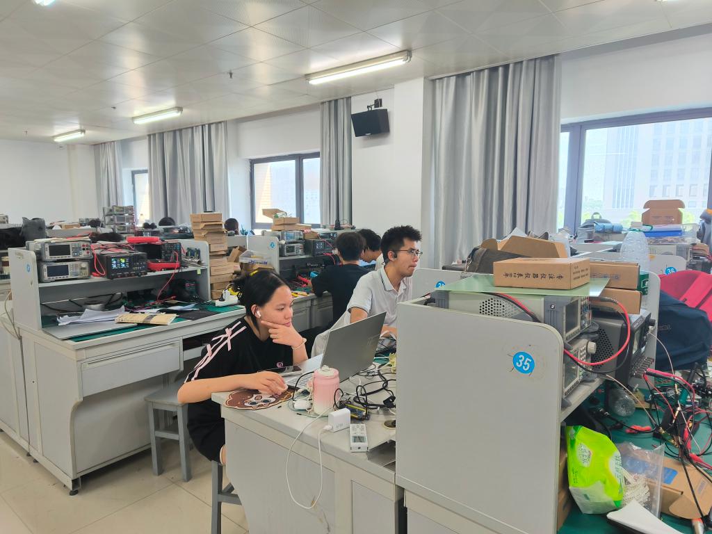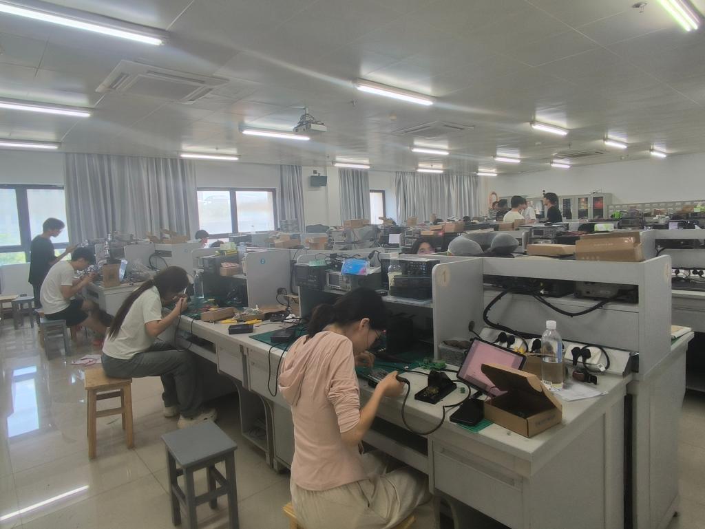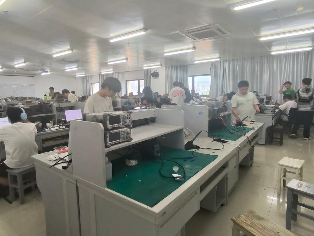 随着开赛指令的下达,各参赛队伍迅速进入备战状态,桌上的电路板、芯片、导线等元器件瞬间被赋予了“生命”。赛场内此起彼伏的键盘声、仪器调试的蜂鸣声,交织成一曲属于科技爱好者的 “交响乐”。