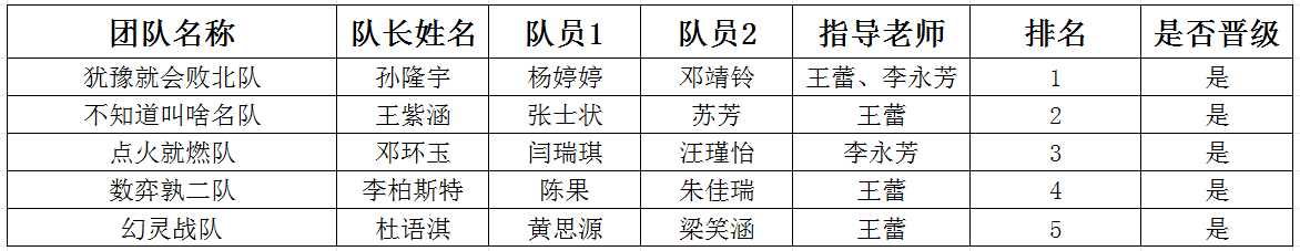 校赛晋级名单