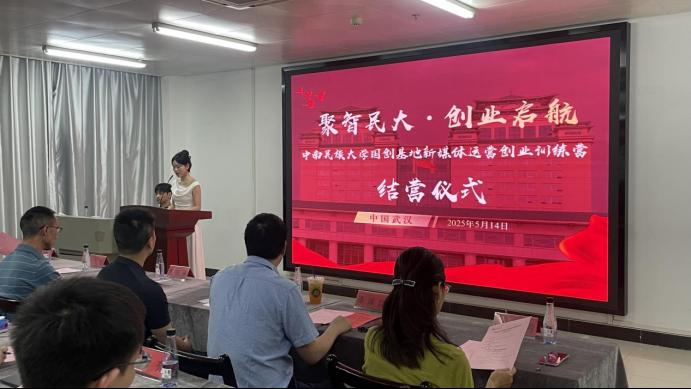 2025年5月14日晚,必赢国际437官网国创基地新媒体运营创业训练营结营仪式在16号教学楼隆重举行。本次训练营由创新创业学院、校团委联合主办,武汉拾米文化传媒有限公司承办,旨在充分发挥国家级创新创业教育实践基地的培育平台作用,培养新媒体运营创业人才,服务“楚才聚汉、共建支点”战略,推进“创新带动创业、创业带动就业”行动。本次活动的主题是“聚智民大 创业启航”,校党委宣传部、校团委、实验教学与工程训练中心、创新创业学院、拾米文化公司等单位负责人,训练营全体学员共同参与,见证了这场充满收获与成长的盛会。