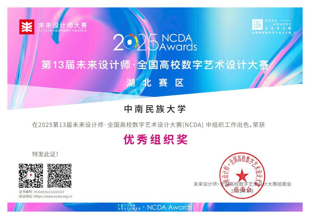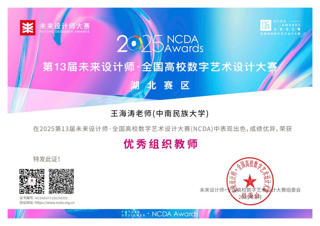 8月28日,必赢官网收到第13届未来设计师·全国高校数字艺术设计大赛(NCDA)组委会发来的获奖通知书,必赢官网学子喜获省奖37项、国奖8项。必赢官网荣获优秀组织奖,王海涛老师荣获优秀组织教师奖。