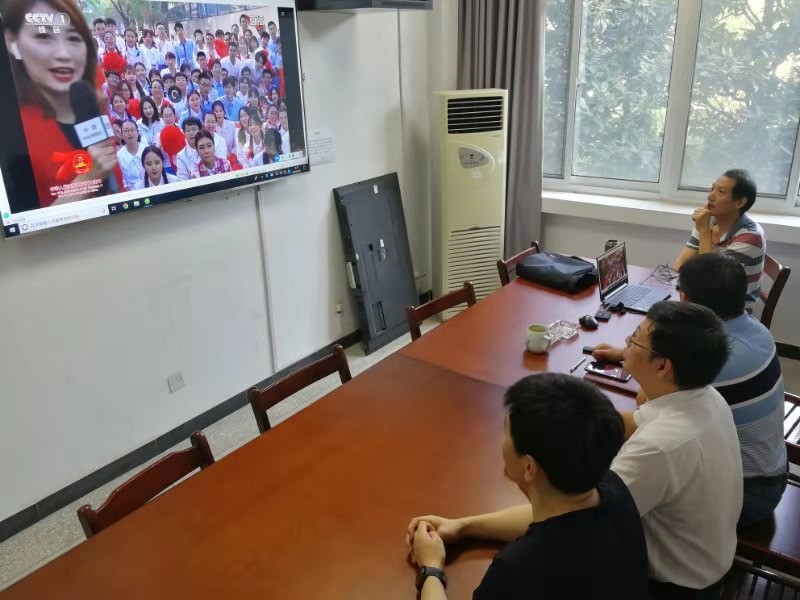 ▲同志们集中收看新中国成立70周年庆祝大会实况直播
