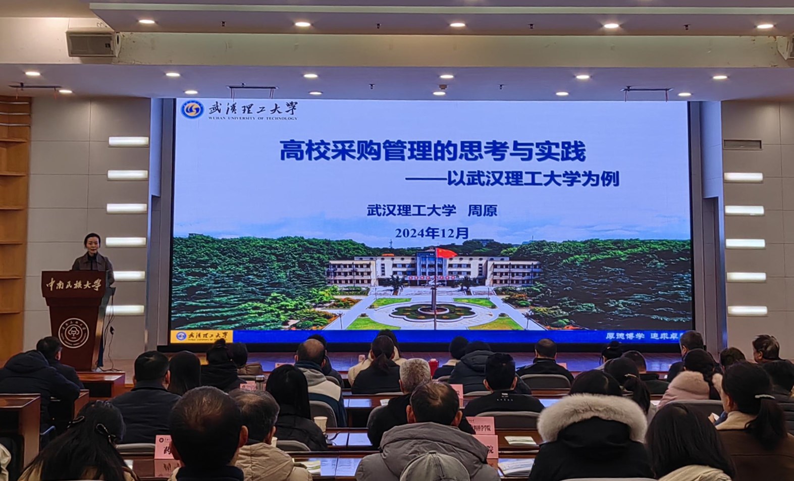 ▲武汉理工大学采购与招标管理办公室主任周原作报告