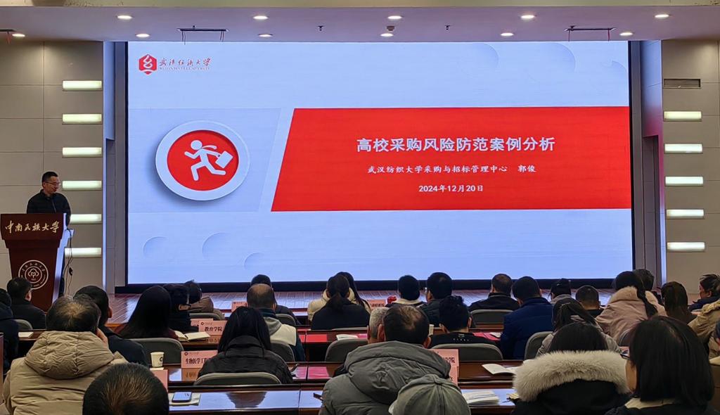 校党委副书记、副校长宋发军,武汉理工大学采购与招标管理办公室主任周原,武汉纺织大学采购与招标管理中心主任郭俊,校内各单位采购业务负责人和经办人员参加了培训会。会议由我中心主任陈心浩主持。