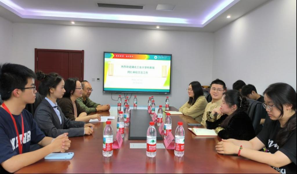 参观结束后,双方齐聚会议室,围绕校史馆相关工作展开了深入的交流。我馆讲解队指导老师田银娟详细介绍了必赢官网校史馆讲解志愿服务队的基本情况,涵盖主要工作内容、队伍构成以及队伍管理等方面。随后,湖北工业大学校史宣讲协会指导老师黄瑶、肖媛媛、娄璇对湖北工业大学校史馆的基本情况和讲解队建设情况进行了简要介绍。双方师生积极互动,就讲解队(协会)的运营机制、展馆管理经验、讲解人员的招募与培训方法,以及校史研究的技巧与心得等多方面进行经验分享,思路探讨,互鉴共进。