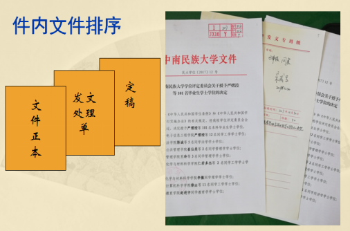 1.发文:正本、发文稿纸、定稿、历次修改稿