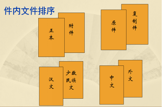 组件→修整→装袋→分类→排列→组卷→编页→著录→移交