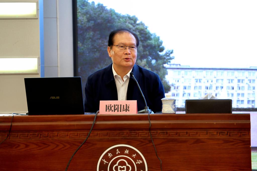 4月30日上午,学校党委举行深入贯彻中央八项规定精神学习教育读书班专题辅导报告暨理论学习中心组(扩大)学习会,华中科技大学国家治理研究院院长欧阳康教授应邀作专题辅导报告。全体在校校领导,各单位主要负责人及部分单位副处级以上干部参加集中学习。校党委书记徐业勤主持报告会。