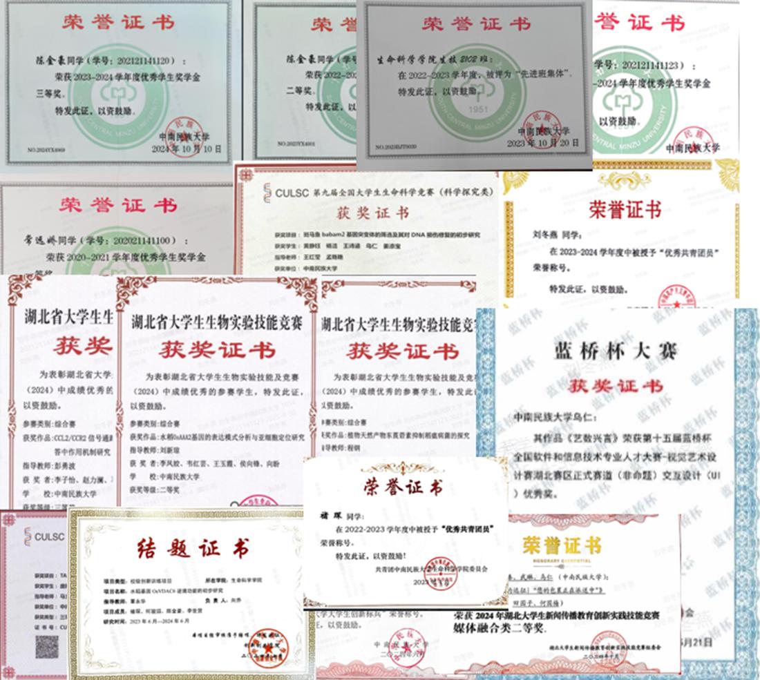 在2023-2024学年,生技2102班专业前十有5人,专业前二十有10人。1人两获国家奖学金,国家励志奖学金、仁东奖学金、社会实践奖学金等亦纷至沓来,用实力诠释着“奖状自由”的底气。在学科竞赛与实践创新的舞台上,班级同学展现出全面发展的卓越风采。全国大学生生命科学竞赛中,生技2102班以94.28%参与率彰显了全员投入的热情,33人中庞雨晨、张钟艺、常远娇等同学斩获国家级奖项。12人参与大学生创新创业大赛并全部顺利结项,乌仁同学斩获省级奖项。一颗颗“敢为人先”的星辰,努力照亮着班级“追求卓越”的星空。