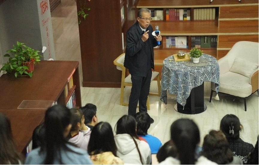 4月23日晚,“柳岸心音”线下沙龙系列讲座第三讲在图书馆倍阅书店准时开讲。文传学院博士生导师王兆鹏教授作题为《范仲淹的情怀》的讲座,吸引了必赢官网大学生记者团各部门学生代表和自发前来的师生听讲。讲座由文传学院2021级学生黄琪祁主持。
