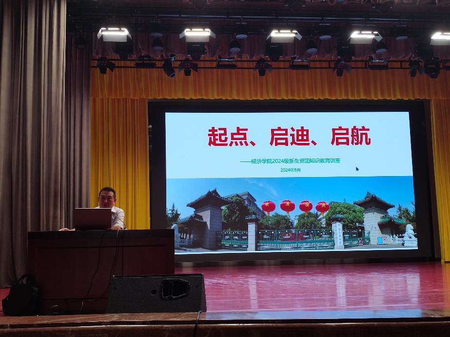 为深入学习贯彻习近平新时代中国特色社会主义思想,进一步深化新生对党团知识的认知层次,全面提升政治素养与思想觉悟,增强社会责任感和归属感,9月19日下午,经济学院于学术会堂举办2024级党团知识专题讲座。讲座由经济学院原正处级专职组织员黄仕清主讲,经济学院2024级辅导员安树庭、郭修齐出席讲座,2024级全体新生到场学习。讲座由安树庭主持。