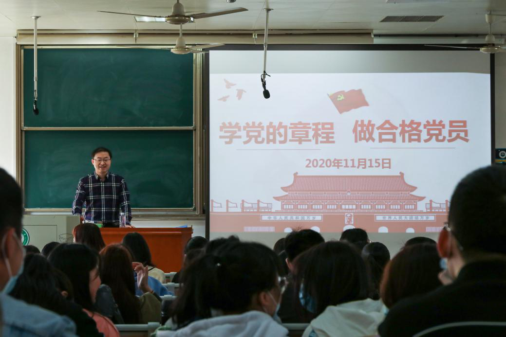 学工部副部长邓俊熙在《学党的章程,做合格党员》的专题讲解中通过分组学习、互相提问、自我反思等方式引导学员们学习党的章程。他希望学员们要有主动承担的意识与自我奉献的精神,明确入党初衷,拟定入党计划,坚守中国共产党的初心与使命,明确党员的责任与义务,争做生活的明白人、同学的领导人、老师的知心人。
