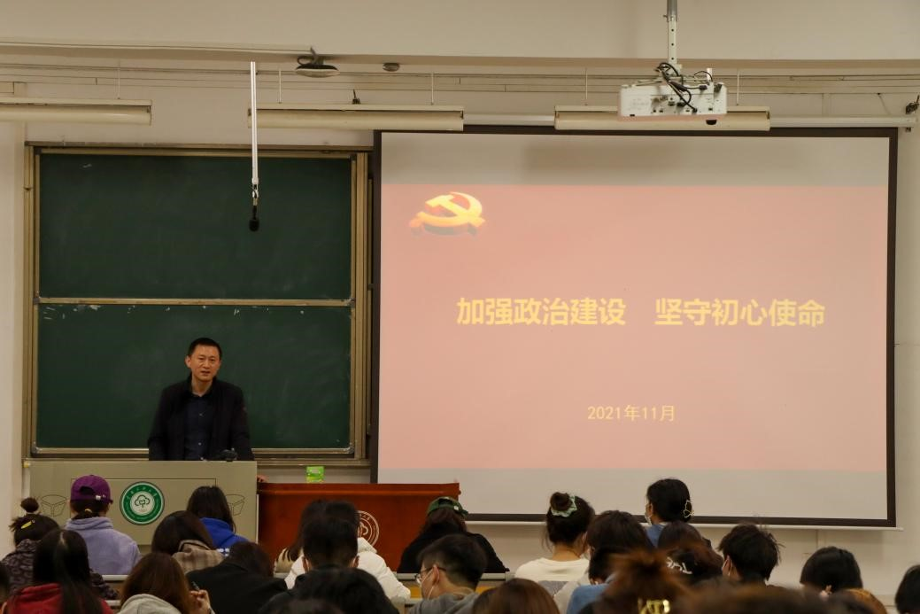 教育学院党委书记周刚以《加强政治建设 坚守初心使命》为题,详细阐述了党的政治建设的深刻内涵和重要意义。他表示,共产党员的初心使命是始终坚持为民族谋复兴、为人民谋幸福。在新时代加强党的政治建设、践行初心使命是重要且必要的。学员们要从历史中汲取经验教训,深刻理解党的十九届五中、六中全会精神,保持良好政治品质,培养战略思维能力,在奋发有为中践行初心使命。