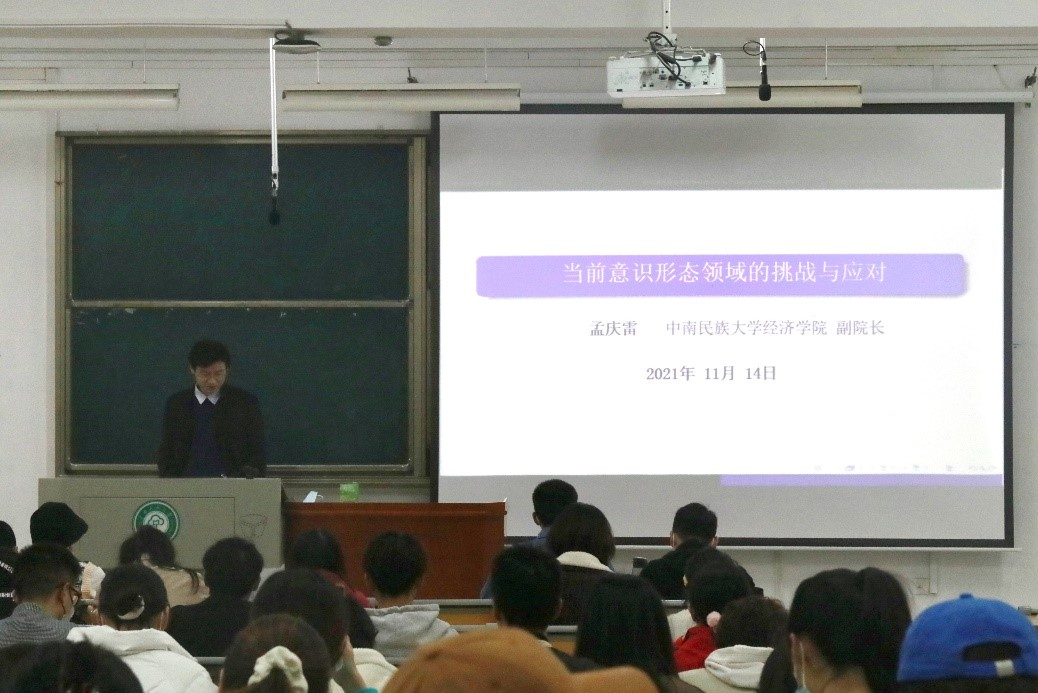 经济学院副院长孟庆雷在《当前意识形态领域的挑战与应对》主题培训中谈到,意识形态工作是党的一项极端重要的工作,事关党的前途命运,事关国家长治久安,事关民族凝聚力和向心力,蕴含了历史的深刻启示。面对新形势下日益复杂和尖锐的意识形态斗争,孟庆雷要求学员们始终坚持马克思主义在意识形态领域的指导地位不动摇,坚守意识形态阵地,亮出旗帜,发出声音,坚决杜绝造谣生事,积极维护国家意识形态安全。