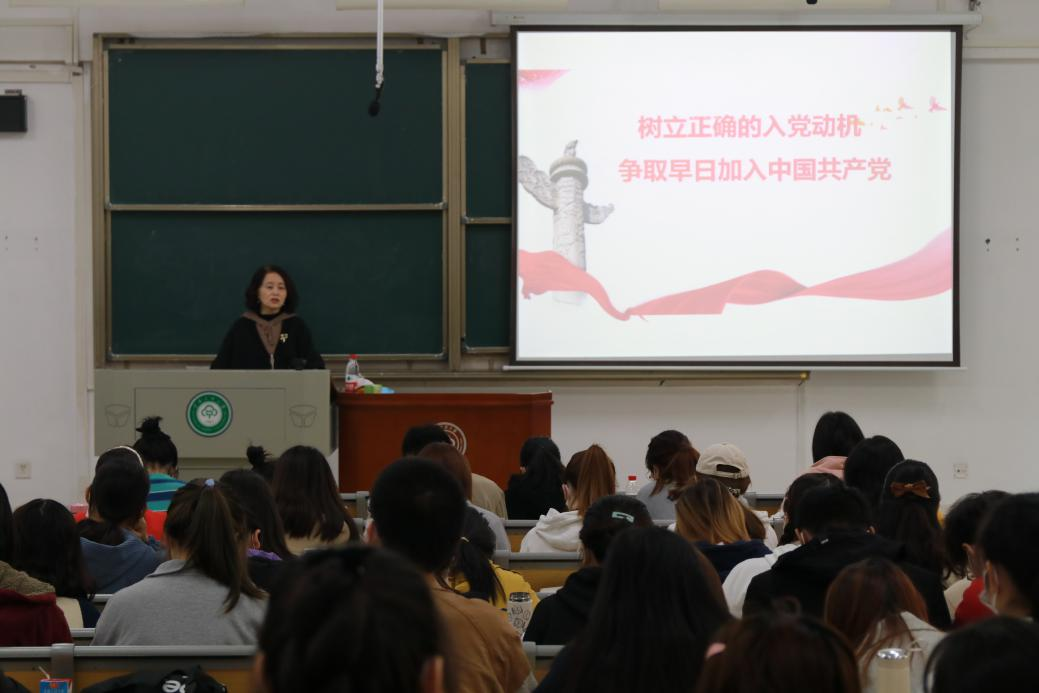 经济学院正处级专职组织员吴婴以《树立正确入党动机--争取早日加入中国共产党》为题,从发展党员的流程与要求、正确的入党动机、入党积极分子的教育和培养三个方面作出指导。她要求培训班学员熟读党章,经常向党组织汇报自己的思想和工作情况,学会自我批评,正确对待党组织的考察,经受住党组织的长期考验,争取早日入党。