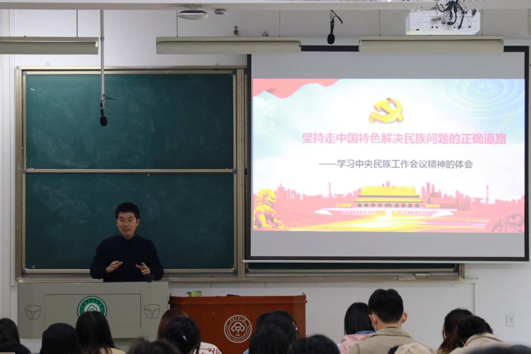 马克思主义学院党委书记魏大江以《坚持走中国特色解决民族问题的正确道路》为题,从什么是中国特色解决民族问题的正确道路、中国特色解决民族问题正确道路的最大成就、新时代把握铸牢中华民族共同体意识这三个方面展开讲解,阐述了党加强和改进民族工作的重要思想。他要求学员们认识到铸牢中华民族共同体意识的重要性与必要性,担负起时代责任和历史使命,不断提升政治素养与理论水平,为社会进步和民族团结做出贡献。